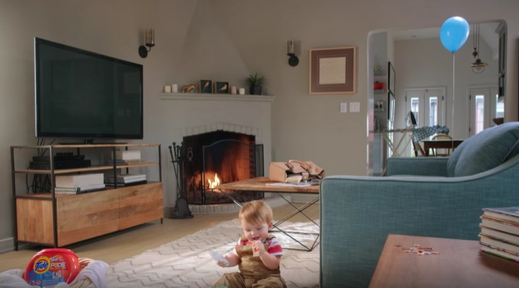 Фотографијата е дел од рекламната кампања на детергент за алишта со која сака да ги потсети родителите дека треба да го држат детергентот подалеку од бебиња и мали деца. Но, освен детергентот, во собата има уште 10 други опасни предмети, а рекламата ги кани сите гледачи да ги забележат за 5 секунди.